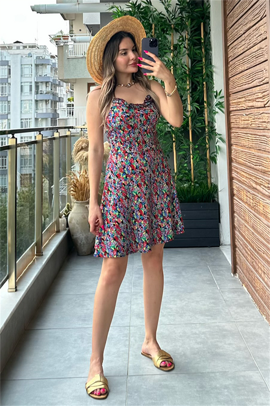 3 AL 2 ÖDEKırmızı çiçek desen çıtır elbise