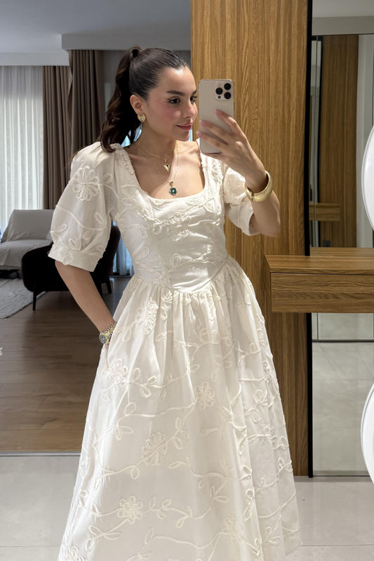 3 AL 2 ÖDERoselune Bej Balon Kol Brode Nakış Elbise