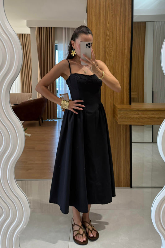 3 AL 2 ÖDEVirel Siyah Askılı Poplin Elbise