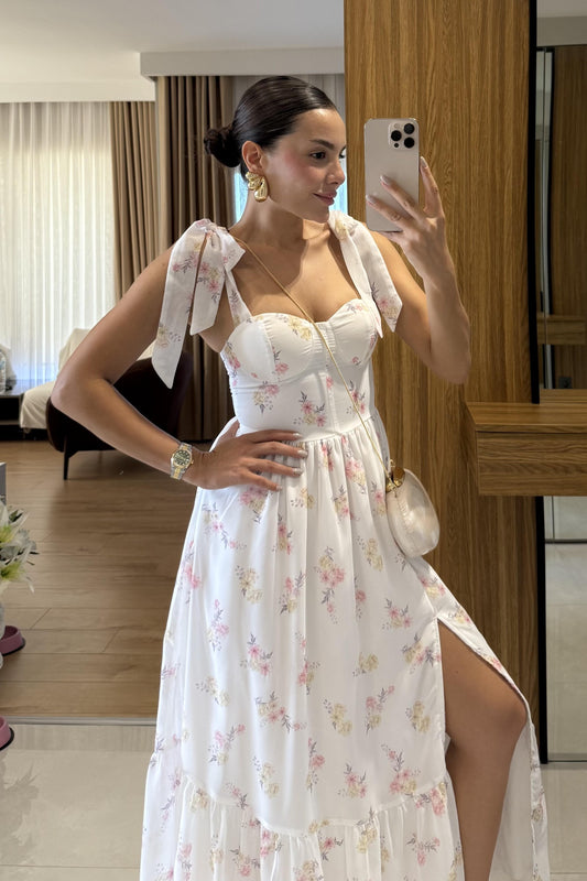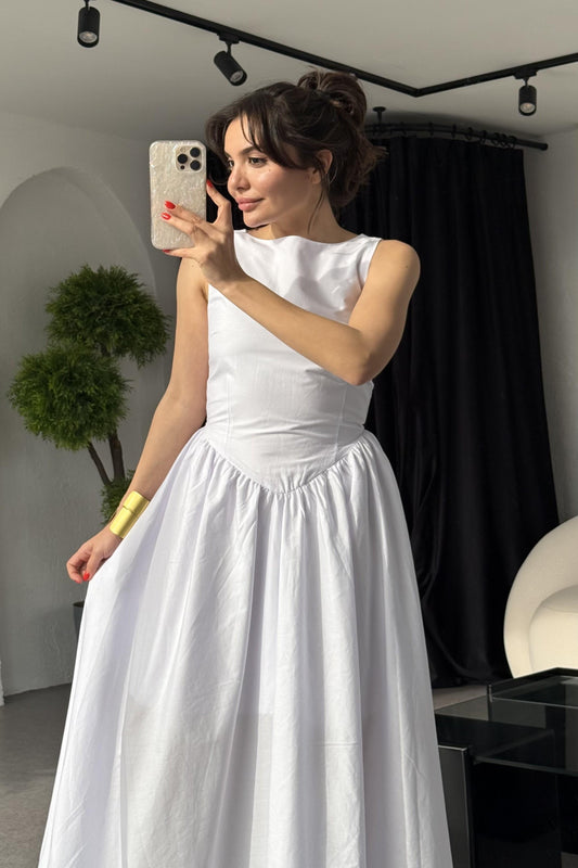 3 AL 2 ÖDEKendra Beyaz Belden Oturtmalı Maxi Elbise