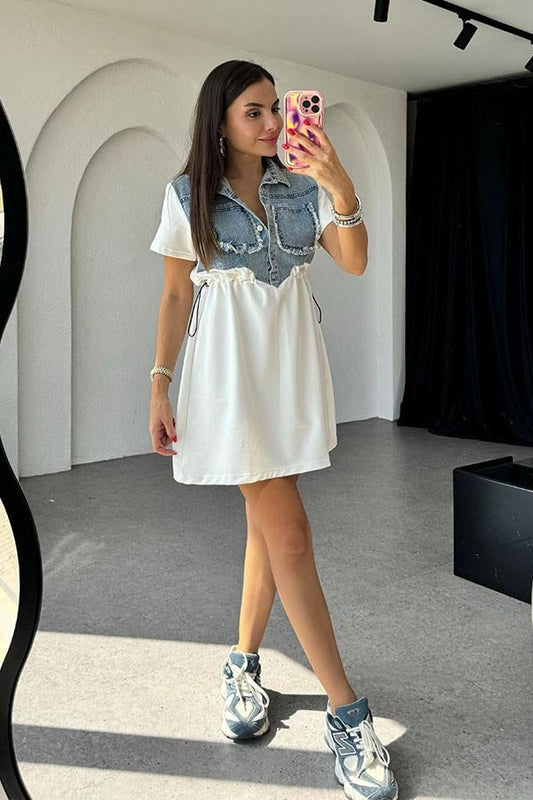 3 AL 2 ÖDEKhloe Jean Detaylı Beyaz Elbise