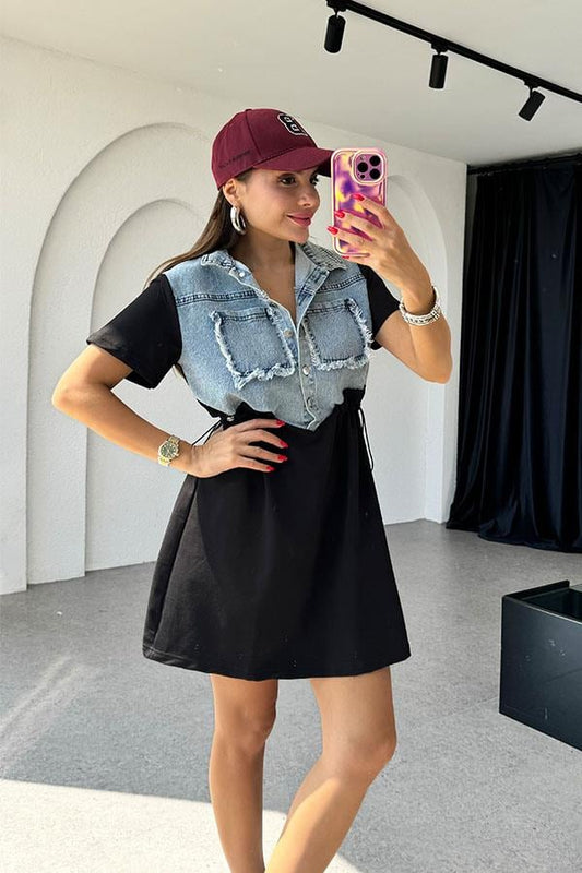 3 AL 2 ÖDEKhloe Jean Detaylı Siyah Elbise