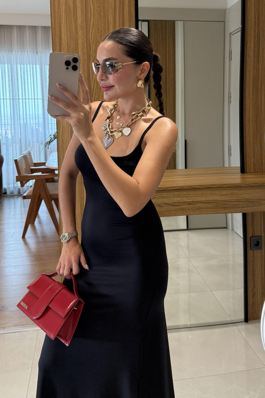 3 AL 2 ÖDEKendrick İnce Askılı Siyah Elbise