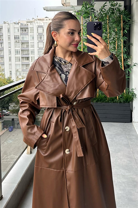 3 AL 2 ÖDEKylie Kemerli Deri Acı Kahve Trençkot